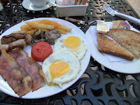This is us putting on a brave face, just about to mount up again when we received the welcome news that we could get beer from the restaurant!